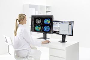 CTやMRIなどのモダリティで開発した臨床アプリケーションソフトを,電子カルテ端末でも使用できるため,より患者さんに寄り添った臨床医によるインフォームドコンセントに役立つ。