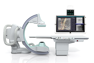 血管撮影システムは,狭心症や心筋梗塞などのカテーテル治療の際にも使用されており,血管内に挿入されたカテーテルやステントなどのデバイスを描出する重要な役割を担っている。ステントの細径化や生体吸収性ステントに関する研究開発の進展にともない,患者の被ばくを抑えながらデバイスの視認性を十分に確保することが血管撮影システムにおける課題となっている。