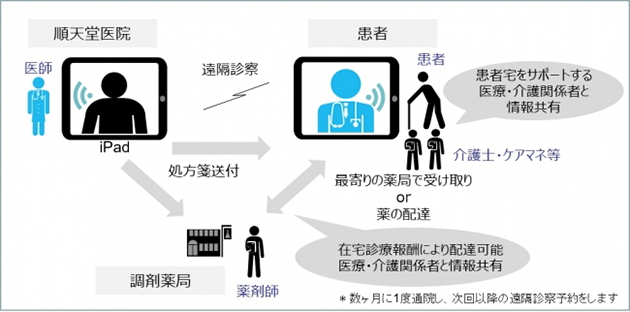 順天堂医院がパーキンソン病や認知症により通院困難な患者を対象とした日本初の本格的な遠隔診療サービスを開始