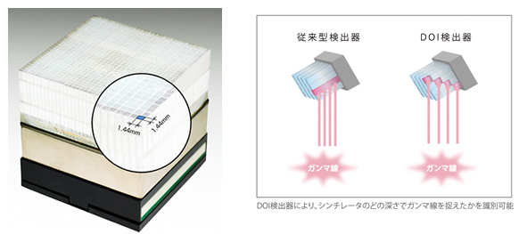 左:4層DOI検出器,右:検出の方式