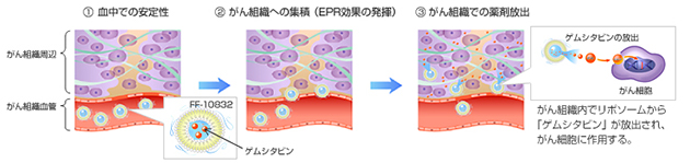【「FF-10832」:がん組織での薬剤放出までのイメージ図】