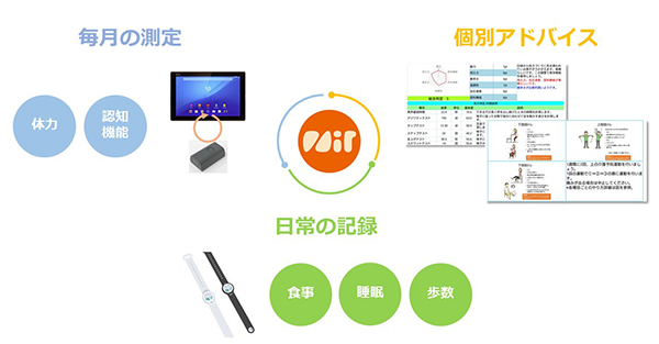 「FAIT」は,専用のスポーツセンサーと運動解析技術により,定期的な体力測定の結果データと,専用のアクティビティトラッカーで記録した食事・睡眠・歩数などの日常活動記録を解析し,ユーザーに合わせたトレーニングメニューをアドバイスするサービス。本サービスは,フィットネスクラブや介護施設などにおいて,個人に適したメニューを提案することにより,健康改善の効率向上やモチベーションの維持に貢献する。