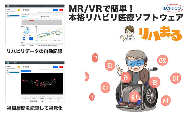 MR/VRコンテンツおよびソフトウェアの開発を手掛ける(株)テクリコは,10月28日(土),29日(日)に実施される第一回日本リハビリテーション医学会秋季学術集会(大阪)において,MR(Mixed Reality,複合現実)機器を用いた認知機能改善リハビリテーションシステム「リハまる」を世界に先駆けて発表し,同日よりサービス提供を開始する。