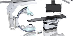 血管撮影システムは,狭心症や心筋梗塞などにおけるカテーテルを用いたインターベンションや血管系疾患の検査時などに使用されるX線撮影装置。インターベンションは,メスを入れる外科治療と比較した侵襲性の低さから近年期待が高まっており,治療デバイスの微小化や高度化,血管造影剤の低減,手技の確立が進んでいる。
