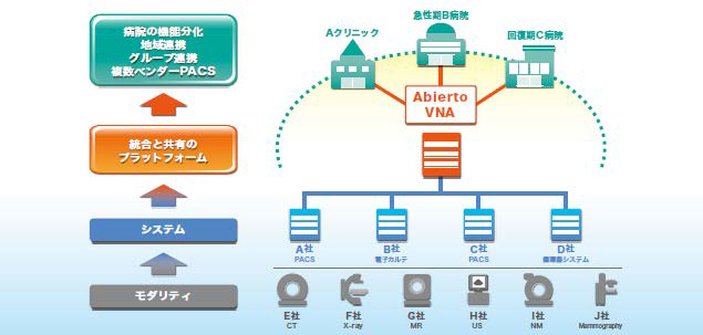 その構想を実現するための新たなソリューションとして,医療データを共有・統合する医療情報統合管理システム「Abierto VNA」,および,その蓄積した価値あるデータを表示・利活用する医療情報統合ビューア「Abierto Cockpit」の提供を開始する。