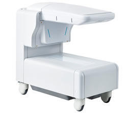 被検者の体の位置を固定する測定装具をより体に密着するように改良したことで,検査位置の再現性や測定精度の向上が期待され,検診施設などにおける,検査値の経年変化検証の信頼性を向上させる。また,予防医療が推進される中,検査に使用する医療機器は性能向上だけでなく,被検者に心理的不安を与えないデザインが求められている。「ALPHYS LF」は,オプションとして,カラーシートがピンクやブルーなど5色の中から選択できる*5。検査室内の色調を揃えることが可能であり,被検者に優しい検査環境を提供する。
