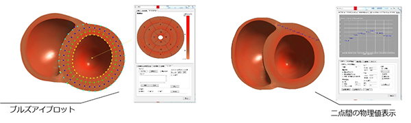 心筋にかかる圧力などの物理的な値をグラフで可視化