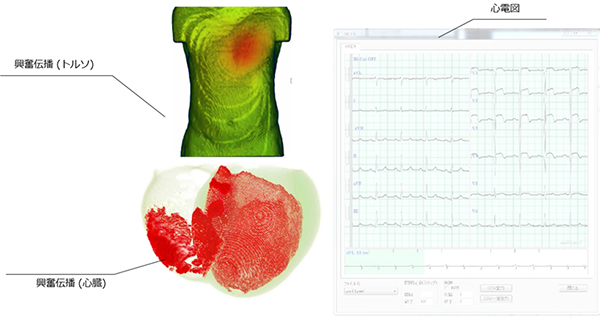 教科書や模型などを用いた教育では,心臓の示す心電図波形と興奮伝播の過程との関係を理解することが困難であると言われている。「Heart Explorer」は,シミュレータにより再現した体の表面に電極を設置し電圧を変化させて心電図を表示すると同時に,心臓内に興奮が伝播する様子を可視化することができ,両者の関係を関連付けして理解することができる。