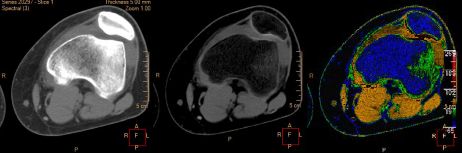 骨髄イメージングを描出するカルシウム抑制画像が新たにスペクトラルリザルトに追加された。従来のCTでは骨の高いコントラストにより表現が難しかった骨挫傷の診断において,カルシウム成分を抑制した画像を用いることで骨髄浮腫の状態を可視化し,MRI等の追加の検査削減や確定診断までの時間短縮を図る。