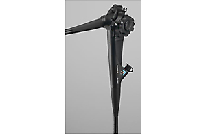 胆管,胆のう,膵管に発生する疾患を検査・治療する十二指腸鏡。スコープ先端の軟性部に弾発性が高い素材を採用した「高追従挿入部」を搭載することで,医師がスコープの向きを変えるために操作部をねじる際,手元の力を先端まで効率良く伝える。本製品は,処置具の角度を調整する起立台の形状・長さ・可動範囲と,スコープ内で処置具などが通る「鉗子チューブ」の素材を見直すことで,処置具のスムーズな出し入れや交換を実現している。また,起立台を最大起立位置にすると,処置具の挿入を補助するガイドワイヤーが押さえられ,簡単に処置具を交換することができるため,治療時間の短縮が期待できる。