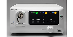 光源に複数の異なる波長のLEDを使用することで,白色光と短波長狭帯域光を生成できる内視鏡システム。照射した光と画像処理を組み合わせることで,粘膜表層の微細な血管や構造などを強調して表示する機能「BLI」や,画像の赤色領域のわずかな色の違いを強調して表示する機能「LCI」によって,病変の観察をサポートする。患者に威圧感を与えない柔らかな造形の清潔感ある筐体で,情報と操作ボタンを集約させた黒い表示部による特徴的なデザインのLED光源一体型プロセッサー(EP-6000)と,ワンステップでプロセッサーに接続できる専用スコープ(EG-6400Nなど4種)で構成される。