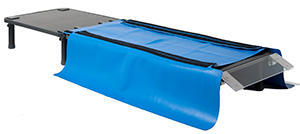 「SPRIT」は天板に遮蔽シートを貼り付けた防護設備。患者の身体を覆うように遮蔽シートをかぶせることで,IVR時の散乱線の拡散を80~90%カットし,上半身や手指,水晶体を被ばくから守ることができる。