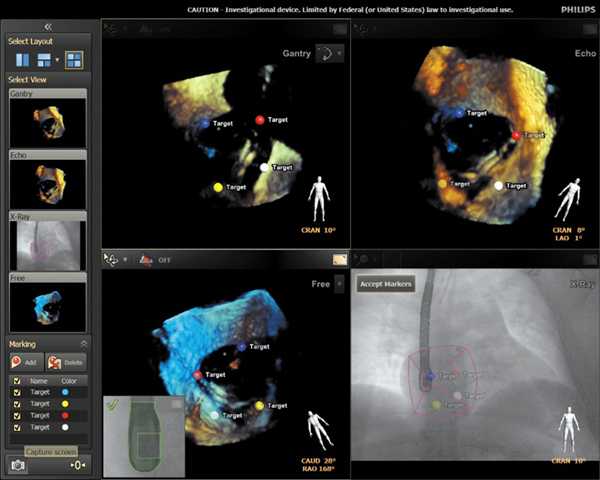 X8-2t経食道トランスジューサにより,従来のX7-2tと比較して更に明瞭な臨床画像を得られるようになった。Live 3D TEEは,外科医や麻酔科医の手術のプランニングを支援する詳細な臨床情報を提供する。得られた3Dデータを,MPR機能を使用して複数の2D画像にスライスし,スライスプレーンの位置を少しずつ移動させると,弁や弁尖部などの構造上の欠陥が詳細まで確認できる。Surgeon’s viewやLV側から僧帽弁を観察するviewでは,プランニングに役立つさらに多くの情報が得られる。また,ASD閉鎖栓,LAA閉鎖栓,僧帽弁のedge-to-edge repair,TAVR等,カテーテルガイド下でのインターベンションにおいても有用で,血管撮影装置の透視画像とエコー画像をリンクさせるEchoNavigator機能にも対応している。