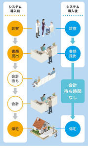 - 事前登録した患者さんは,診察後に支払窓口で会計をせずにそのまま帰宅できる。