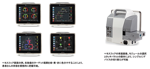 ・日本で主要な連続的心拍出量モニタリングデバイスとして使用されている* 2つを含む,4つのデバイスと接続可能。また接続の切り替えも,モジュールの選択とタッチパネルによるシンプルな操作で実現。