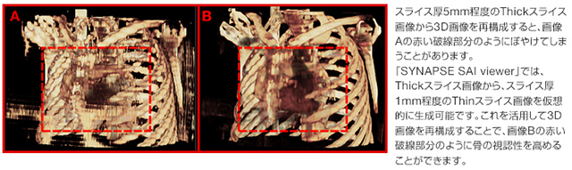 さらに,「SYNAPSE SAI viewer」は,高速で3D画像の回転・拡大・縮小などの操作ができる。これにより,画像診断における診断効率の向上と医師のストレス軽減に貢献する。