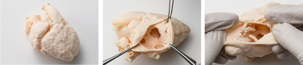 生まれつきの心臓の構造異常である先天性心疾患は出生約100人に1人の割合で発症し,生命に関わる生まれつきの病気として最も頻度の高い疾患。その特徴は,対象とする新生児や乳児の心臓が極めて小さく,立体構造が極めて複雑で,その上に個人差が大きいことにある。今回販売を開始する術前支援モデル「CARDIO Simulator®」は,複雑な先天性心疾患患者さんの診療で実施されたCT検査の3次元画像情報から,名前や生年月日などの個人情報を消したデータをもとに,3Dプリンタと特殊な鋳型の技術を駆使して製作される。