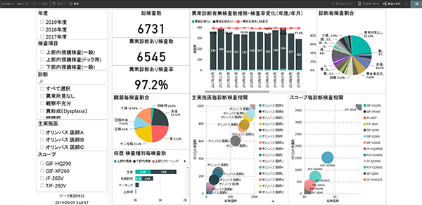 Vivoly第一弾のコンテンツとして,「レポート機能」と「データ分析機能」の2つを用意。医療情報の記録に使用するレポート機能は,JED※1が定義する項目・用語に対応し,データ入力の効率化を目指した。データ分析機能は,蓄積された医療情報を自動的に集計・分析することで,臓器別の検査情報や患者さんの来院動態などさまざまなデータを抽出し,医師のデータ活用をサポートする。これらの機能により,より効率的で確実な内視鏡検査をサポートする。