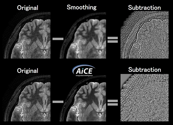 AiCEは同社CT装置にいち早く製品搭載(注3)されている技術で,分解能を維持したままノイズを選択的に除去することができる次世代再構成技術。世界で初めてMRIに搭載した。
