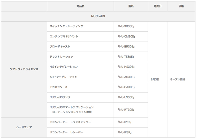 ソニーは,病院内の多様な機器の映像をIPネットワーク経由でリアルタイムに一元化し,多用途の記録編集・管理・活用を可能にする新たなメディカルイメージングプラットフォームNUCLeUS(ニュークリアス)を提供開始する。同プラットフォームを構築する新商品として,映像の管理・活用に関わる各種ソフトウェアライセンスを発売する。さらに,病院内の映像データの伝送を行うIPコンバーターも同時に発売する。
