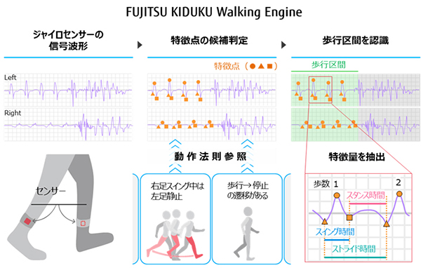 (株)富士通研究所および富士通(株)は,疾病の影響によって多様に発生する患者の歩き方の特徴を定量化する,歩行特徴デジタル化技術「FUJITSU KIDUKU Walking Engine(キヅク ウォーキングエンジン)」を開発した。