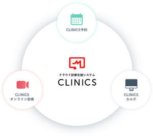 【製品概要】「クラウド診療支援システムCLINICS」は,医療機関の診療業務には欠かせない“予約〜受付〜診療〜会計”までの診療業務システムを統合し,診療業務の効率化を実現するシステム。また,患者はオンライン診療アプリCLINICSを利用することで,予約から診療,会計までをオンラインで完結できるため,医療体験の向上も期待できる。