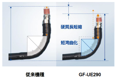 スコープ先端部の硬質部長※1と湾曲部の短縮化を実現し,胃,十二指腸内の操作性が向上。
