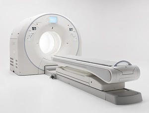 Cartesion PrimeのCT部には最新鋭の80列CT装置を採用した。X線光学系技術PUREViSION Optics,被ばく低減技術AIDR 3D* Enhanced,金属アーチファクト低減処理SEMAR等を搭載し,幅広い検査で高速・低被ばく・高画質なPET-CT検査を実現する。