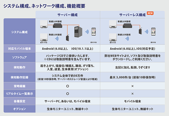 販売中のサーバーを設置するモデルは,集中管理によるきめ細かい介護サービスの提供に貢献し,市場で高い評価を得ている。一方で,初期投資を抑えたいという顧客もいるため,これらの顧客のニーズに応え,検知精度はそのままに,一部の管理機能を見直すことでサーバー設置を不要とするモデルを開発した。