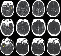 脳実質の血液量分布評価のみだったCTライクイメージングによる3D機能画像に,時間軸情報が追加され,血流評価が可能になった。急性虚血性脳卒中の側副血行動態確認を血管撮影室でも行え,脳梗塞か脳出血かを瞬時に判断できるため,診断から治療への迅速なワークフローを実現する。