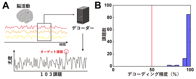 (A)脳活動から遂行中の認知課題を推定するデコーディングの概念図