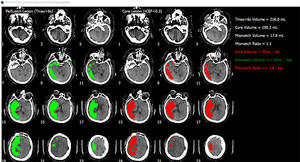 PMAneoは,虚血コアと低灌流領域に相当する体積及びミスマッチの自動解析を数分で行う脳画像解析プログラム。