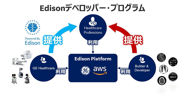 Edisonデベロッパー・プログラムは,AWS上に構築されたAI開発環境であるEdisonプラットフォームを,ソフトウェア開発企業も利用できるようにし,精度の高い優れたAIアプリケーションの開発からデリバリーまでを支援する取り組み。世界各国のパートナー企業が開発し,GEヘルスケアが品質を検証したAIアプリケーションを日本の医療機関に届けることで,国内におけるプレシジョン・ヘルスを促進する。