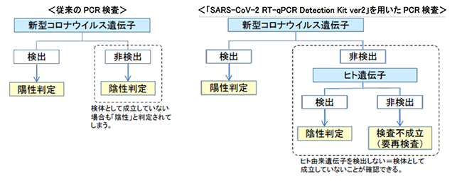 ※1:遺伝子検出キット「SARS-CoV-2 RT-qPCR Detection Kit Ver2」のヒト由来遺伝子同時検出機能によるもの。