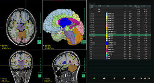 分離した脳区域を可視化し,各領域の体積を定量化できる