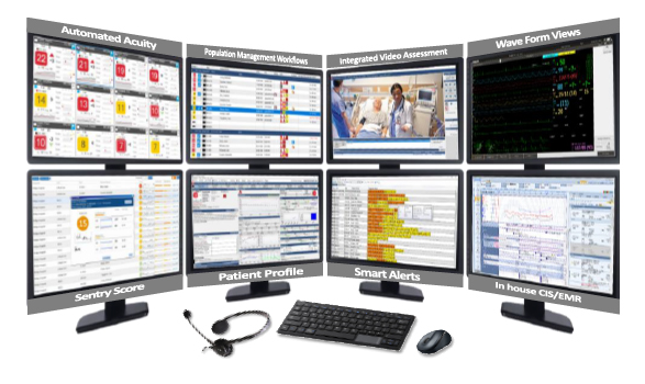 eICUプログラムを運用する上で中心的な役割を果たすソフトウェアeCareManagerにはさまざまなCDS(Clinical decision support, 臨床意思決定支援)ツールが実装されており,支援センターから遠隔地の多数の患者の状態を一元的に把握する,Population managementを可能にする。eCareManagerは電子カルテ,生体情報モニター,人工呼吸器,重症部門システムなどからデータを収集し,独自のエンジンで解析することにより,膨大な量のデータを臨床的に意味のある情報として,即座にアクセスできる方法で表示する。これは高度な習熟度を持ち備えたベテラン専門医の暗黙知を数値化したようなもの。支援センターが医師1名,看護師3名,医療事務1名のチーム構成の場合,最大で150名の患者に対して効率的に予防的なケアを実践し,ベッドサイドスタッフへの早期支援が可能となる。