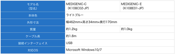 <「MEDIGENIC」キーボードの主な仕様>