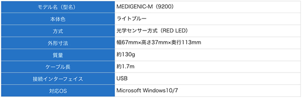 <「MEDIGENIC」マウスの主な仕様>