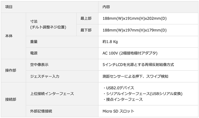 本装置は各種上位装置と接続しタッチレスでの入力をサポートする端末であり,以下の特長を有する。