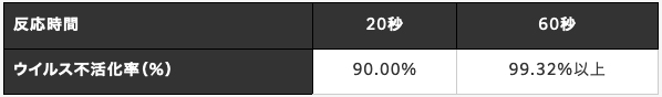 (表1)ウイルス混合20秒および60秒後のハンドジェルに対するSARS-CoV-2不活化評価結果※4