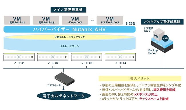 ITインフラのソリューション・ディストリビューターである(株)ネットワールドは,独立行政法人国立病院機構 嬉野医療センターが,電子カルテ用仮想化基盤を刷新するにあたり,ネットワールドが提供するハイパーコンバージド・インフラストラクチャー(HCI)製品「Nutanix Enterprise Cloud OS」を導入し,本格稼働開始したことを発表した。