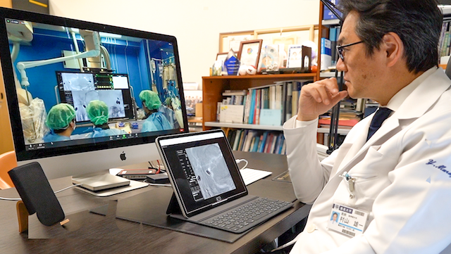 遠隔指導医として検証に協力した,東京慈恵会医科大学附属病院 脳神経外科教授 村山 雄一氏は「現場にいるかのように指導・支援ができました。新型コロナウイルスの影響で,医学生の臨床見学や,経験の少ない医師への出張指導が制限される中,このような仕組みを活用してコロナ時代の新しい医学教育システムを提供していきたい。」と述べている。