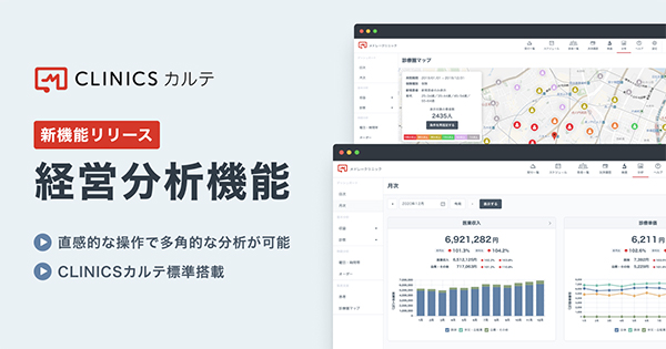 (株)メドレーは,「CLINICSカルテ」の新機能として,直感的な操作で多角的な分析ができる「経営分析機能」を,3月30日(火)にリリースする。