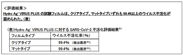 独自の抗菌技術「Hydro Ag+」の活用で抗菌・抗ウイルス効果が長く持続する,新型コロナウイルスの不活化効果を確認※1