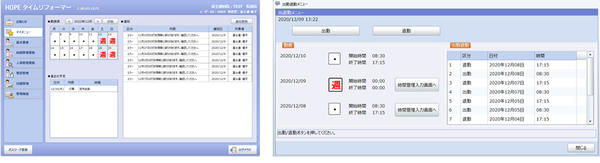 図2. メニュー画面と出退勤操作画面