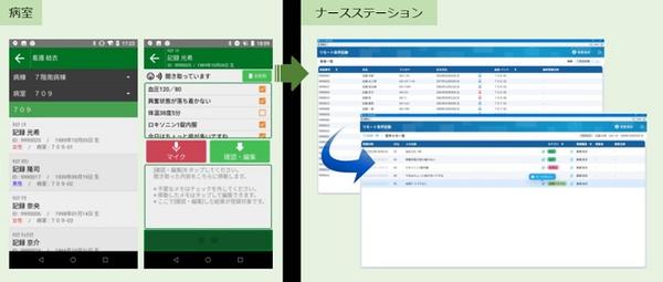 これにより,看護師は患者に対するケアや治療経過などの情報を,発話を通じて場所を選ばず効率的に記録することが可能となり,多くの時間を要する看護記録業務を軽減して患者に対するより質の高い看護に注力することができる。さらに,入力デバイスへの接触機会を減らすことにより,感染症リスクの軽減も実現できる。