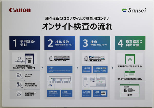 キヤノンメディカルの検査システムとSanseiの検査用コンテナを利用することにより,新型コロナウイルスの検査をオンサイトで迅速に実施することが可能となる。様々なイベントの中止が続く中,感染症対策の一環として利用され,オリンピック・パラリンピックに向けたスポーツイベントや競技大会が国内で開催されることを期待している。