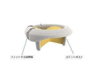 マイトリスは溶液に保存されていないため,手術室でパッケージを開くだけですぐに使用できる。さらに同社従来製品よりも縫着輪が柔らかくなり,より扱いやすくなった。また,ステントポストが低いことに加え,内側に倒れこませることが可能になったことで,より安全な手術をおこなえる。