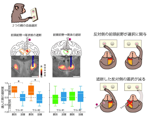 以上の2つの実験結果から,前頭前野背外側部から繋がる尾状核と視床の経路はそれぞれ意思決定と作業記憶に必須の経路であることが明らかになった。