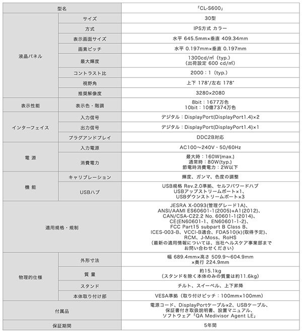 (株)JVCケンウッドは,JVCブランドより,医用画像表示モニター「i3シリーズ」の新ラインアップとして,30型600万画素カラー液晶モニター「CL-S600」を10月下旬より発売する。